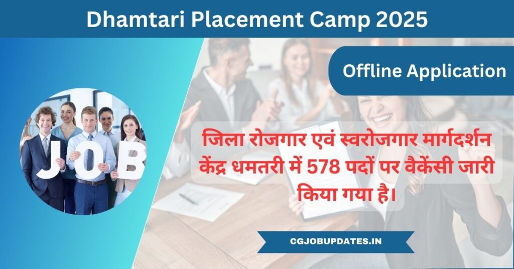 Dhamtari Placement Camp 2025 | जिला रोजगार एवं स्वरोजगार मार्गदर्शन केंद्र धमतरी में 578 पदों पर वैकेंसी जारी किया गया है।